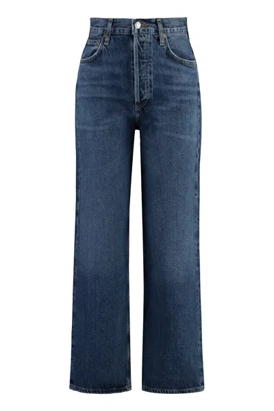 Vana Fold Waistband Wide Leg Jeans In Blue
