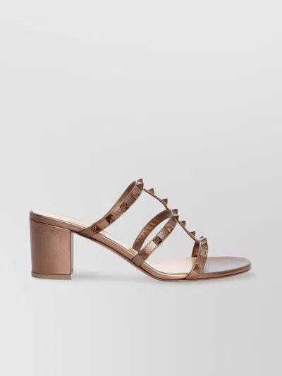 Studded Block Heel Leather Sandals In Neutral