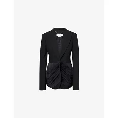 垂褶缎布边饰羊毛西装式外套