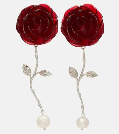 Rose-inspired Earrings With Freshwater Cultured Pearls In Red
