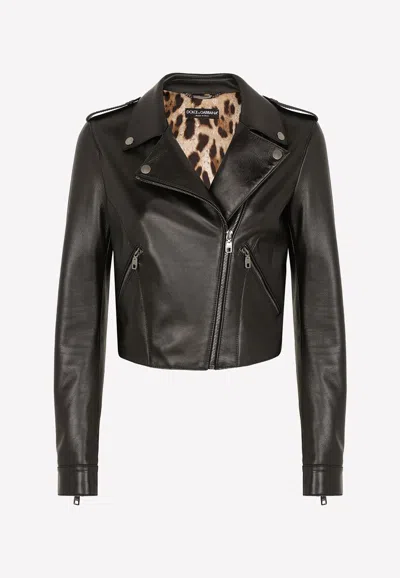 Cropped Leather Jacket In Black