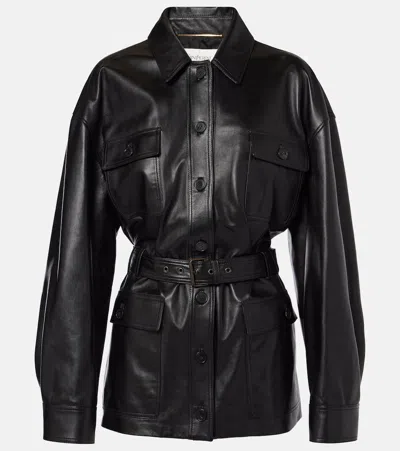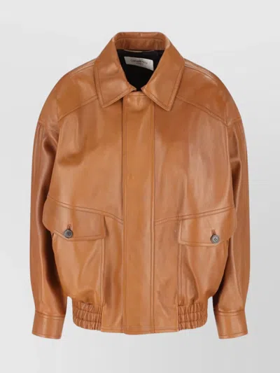 Aneli Double-collar Leather Bomber Jacket In Brown