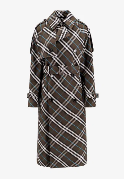 Signature Check Double-breasted Trench Coat In Brown