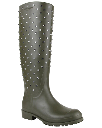 Diamond Stud Rubber Rain Boot In Green