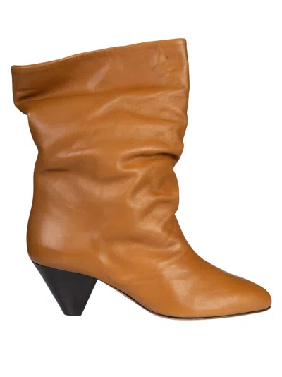 Reach Mid-calf Leather Cone Heel Boots In Brown