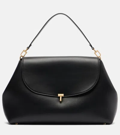 Puzzle Fold Pochette Leather Shoulder Bag In Black