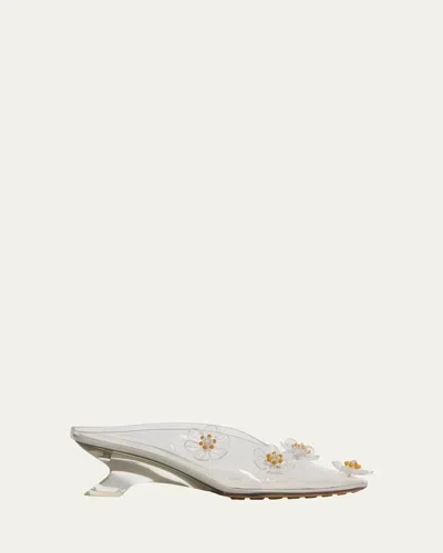 Flower Pudding Rubber Kitten-heel Mule Pumps In White