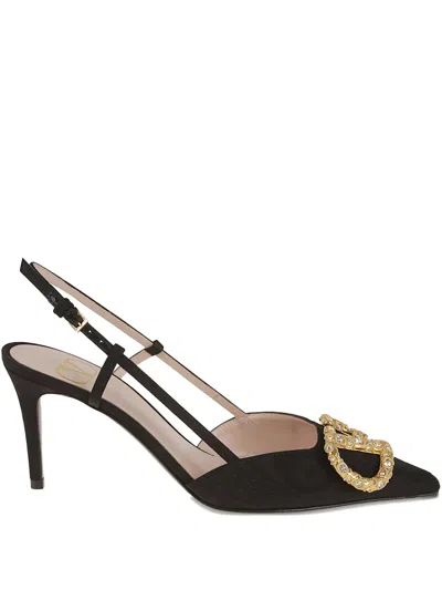 Sling Back Vlogo Signature T. 80 Vintage Brass Logo Jewel In Black