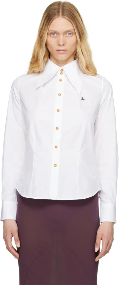 Orb High-collar Cotton Shirt In White