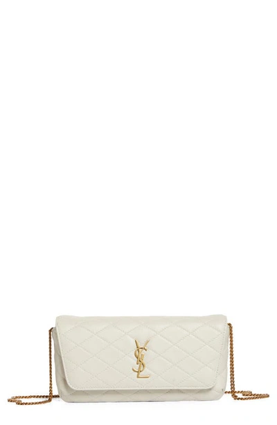 Gaby Phone Holder Ysl Crossbody Bag In Quilted Smooth Leather In Blanc Vintage