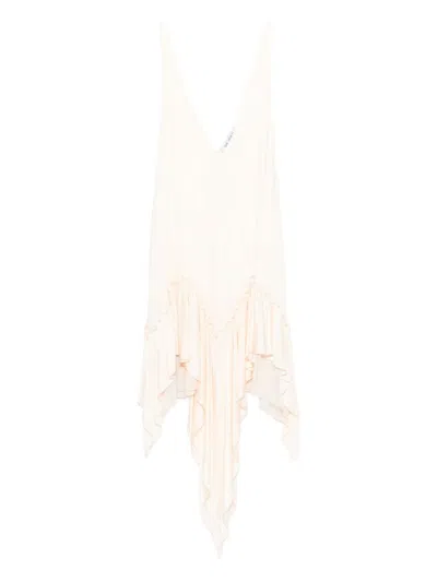 Mini Dress With Asymmetrical Hem And Ruffle Detailing In White