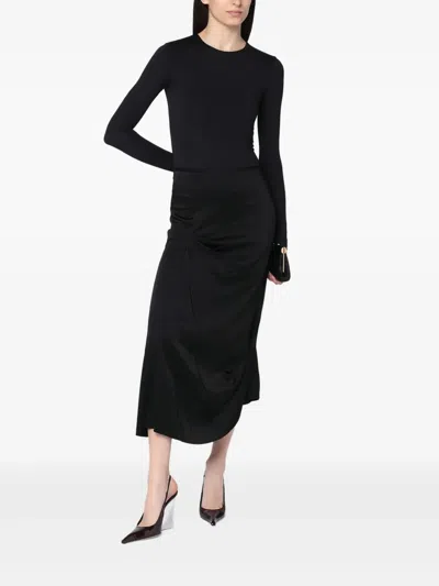 Draped Midi Skirt Asymmetric Design Slit In Black