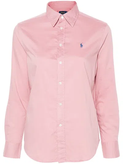 Pink Shirt With Classic Collar And Logo Embroidery On The Front In Cotton Woman