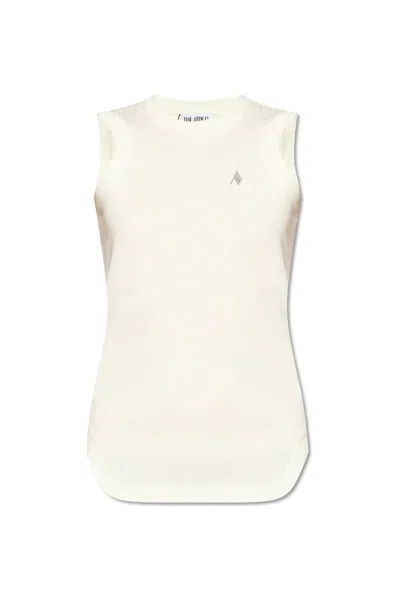 White Sleeveless Crewneck Top With Tonal Logo Embroidery On The Front In Cotton Woman