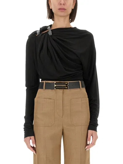 Sculptural One-shoulder Bustier With Architectural Elements In Black