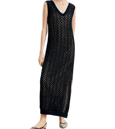 Lethe Pointelle Knit Maxi Dress In Scarlet Red Virgin Wool Silk