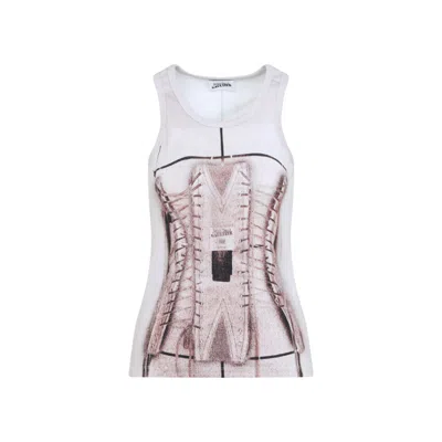 Cotton Ribbed Tank Top Printed ''trompe L'ceil Corset'' In Pink