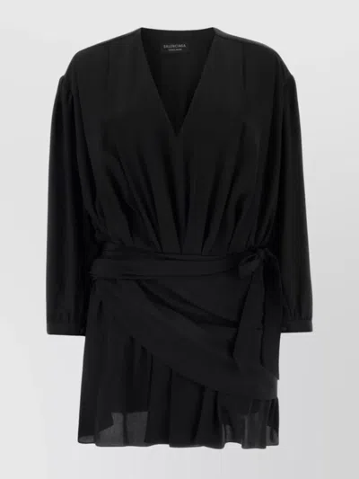Mini Dress With Belted Waist And Wrap Detail In Black