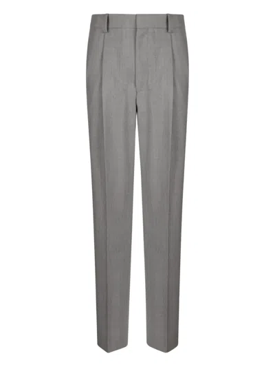 Pleated Drop-waist Straight-leg Trousers In Gray
