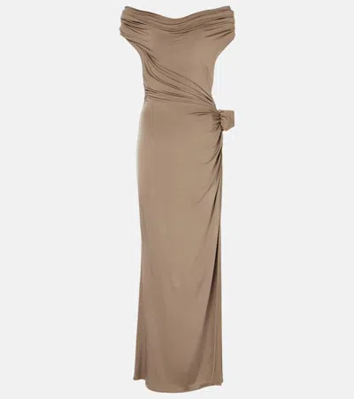Curved Off-the-shoulder Crepe Long Dress In Black