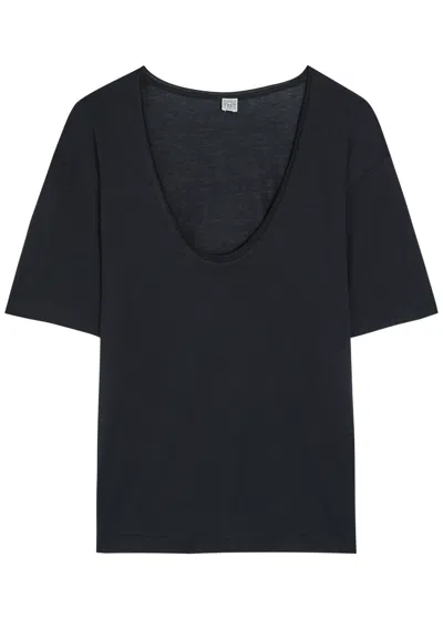 Toteme Scoop-neck Cotton And Silk-blend T-shirt In Black