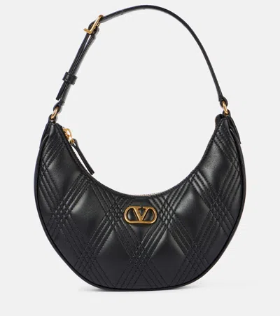 Vlogo Embellished Textured-leather Shoulder Bag In Black
