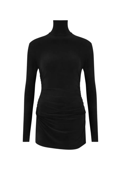 Pickleball Ruched Stretch-jersey Mini Dress In Black