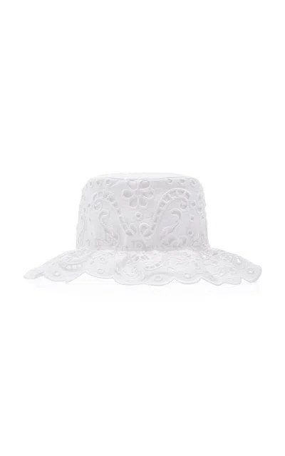 Broderie-anglaise Cotton-blend Hat In White