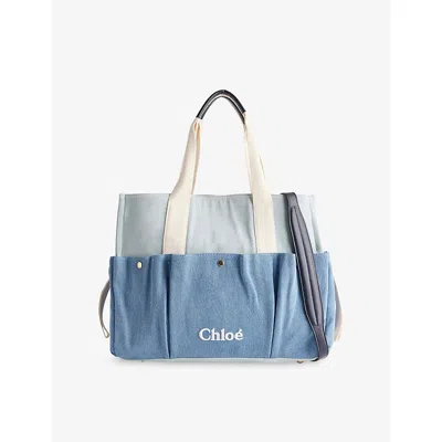 Babies' Ophidia Heart-and-star-print Canvas Changing Bag In Blue
