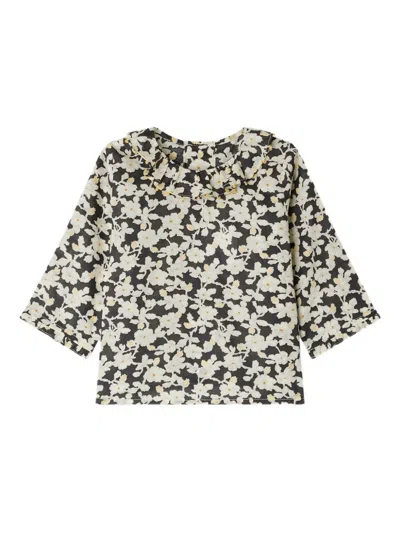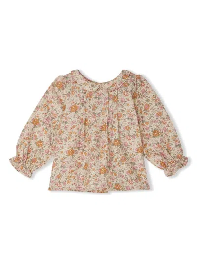 Babies' Floral-print Long-sleeve Blouse In Blue