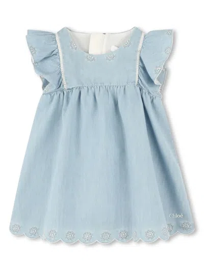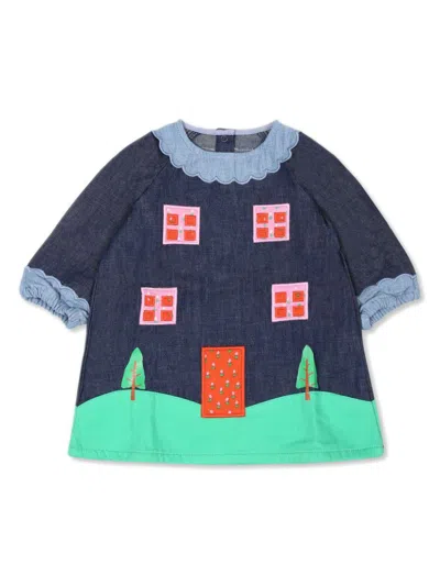 Babies' Flower-appliqué Denim Dress In Blue