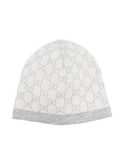 Babies' Gg Intarsia-knit Wool Beanie In Grey