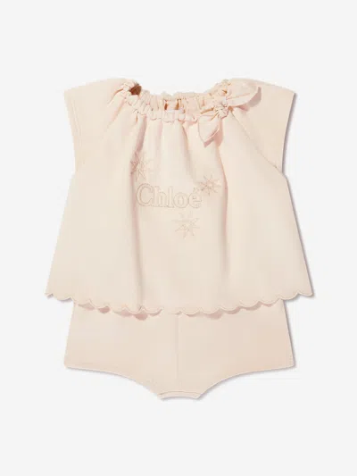 Pink Romper Set For Baby Girl With Logo