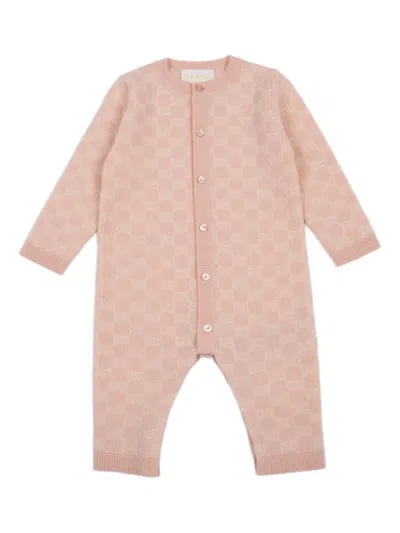 Babies' Gg Supreme-jacquard Wool Romper In Pink