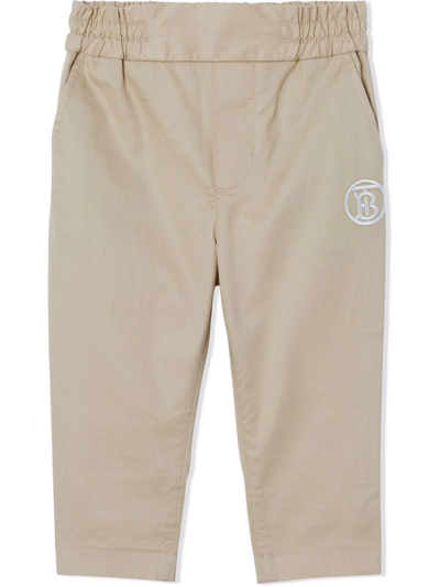 Babies' Kids Cotton Tb Monogram Trousers In Neutrals
