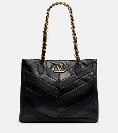 Vlogo Embellished Textured-leather Shoulder Bag In Black