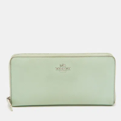 Pre-owned Light Green Leather Long Zip Around Wallet