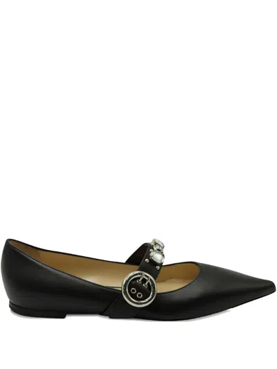 Pre-owned Black Leather Embellished Ballet Flats Size 36.5