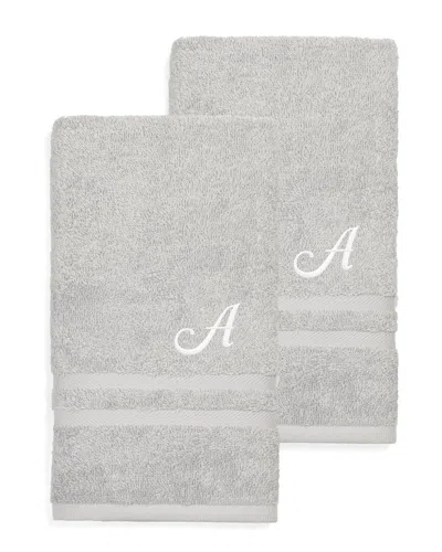 Monogram Turkish Cotton 2pc Denzi Hand Towel Set (a-z) In Gray