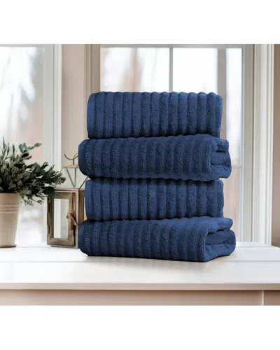 4 Pack Ribbed Egyptian Cotton Bath Towel In Blue
