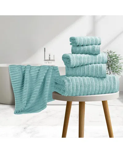 6 Piece Ribbed Egyptian Cotton Towel Set In Green