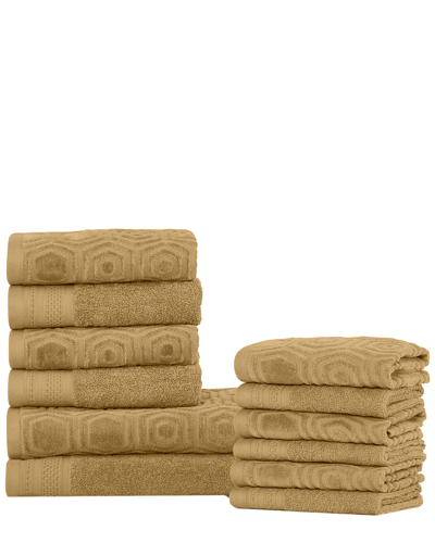 Jacquard And Solid Absorbent 12pc Towel Set In Brown