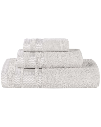 3pc Zero Twist Cotton Dobby Border Plush Soft Absorbent Towel Set In Silver