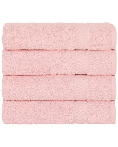 Set Of 4 Turkish Cotton Sinemis Terry Hand Towels In Pink