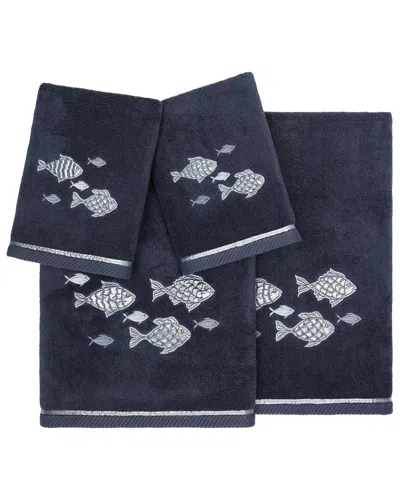 Turkish Cotton Figi 4pc Embellished Towel Set In Blue
