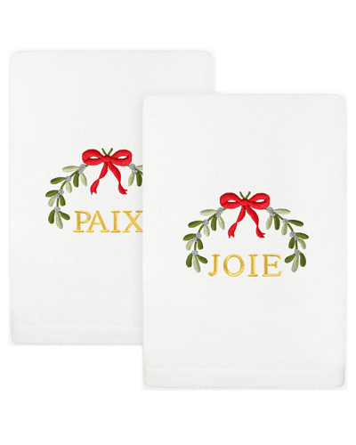 Set Of 2 Christmas Mistletoe Paix & Joie Embroidered Luxury Turkish Cotton Hand In White