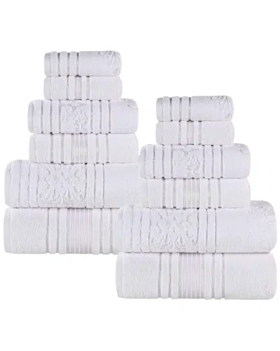 Sadie Zero Twist Cotton Jacquard Floral Absorbent 12pc Assorted Towel Set In White