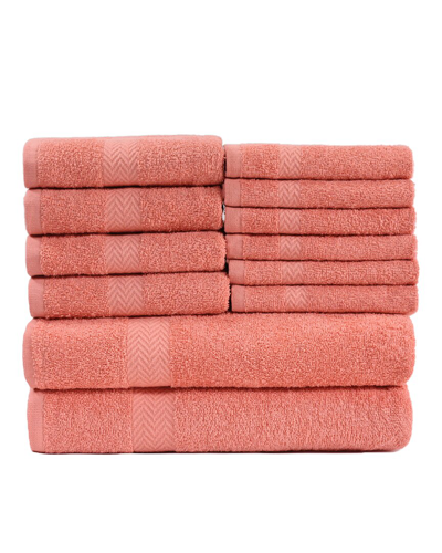 Eco-friendly 12pc Absorbent Towel Set In Coral