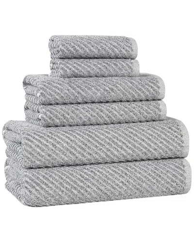 Amelia Medium Weight Diagonal Stripes 6pc Towel Set In Gray