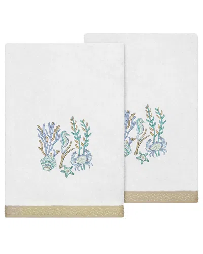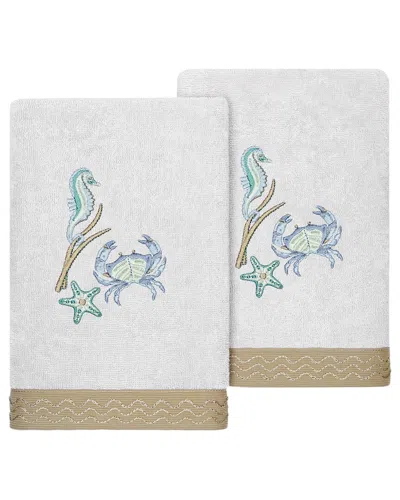 Maggie 2pc Embellished Turkish Cotton Bath Towel Set In White